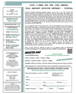 C-GEMS invites you to our 23rd Annual Fall Harvest Missions Retreat – OCT. 17 & 18, 2025!